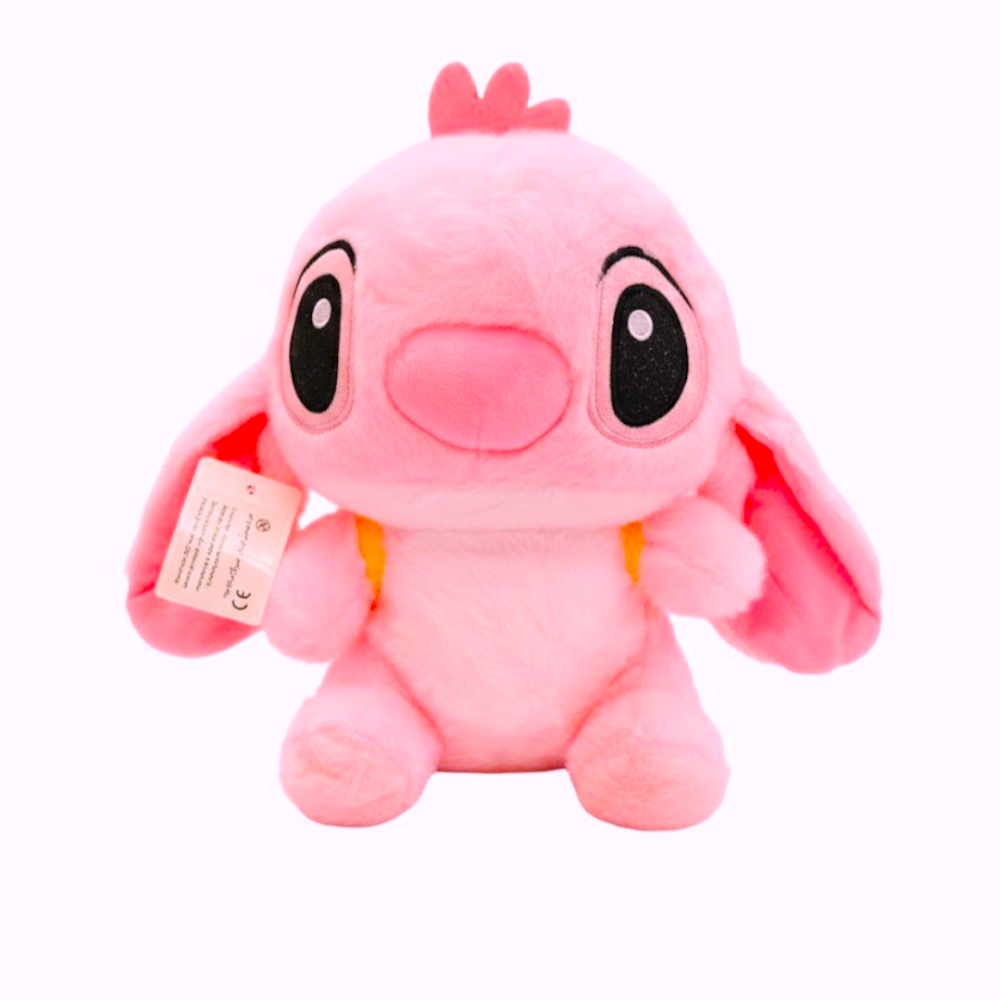 Stitch Plus Roz MADGENIX este o jucărie de pluș adorabilă, moale și sigură, cu rucsac galben detașabil. Ideală pentru îmbrățișat, joacă și decor, potrivită pentru copii de peste 3 ani.