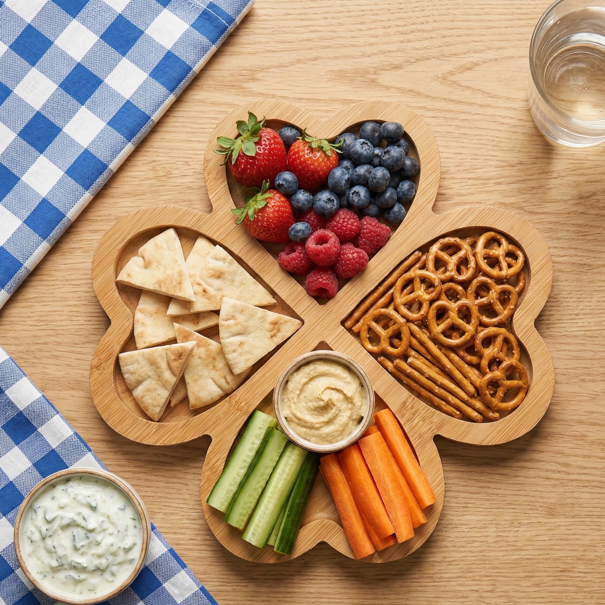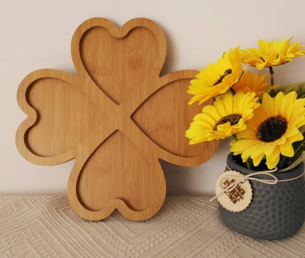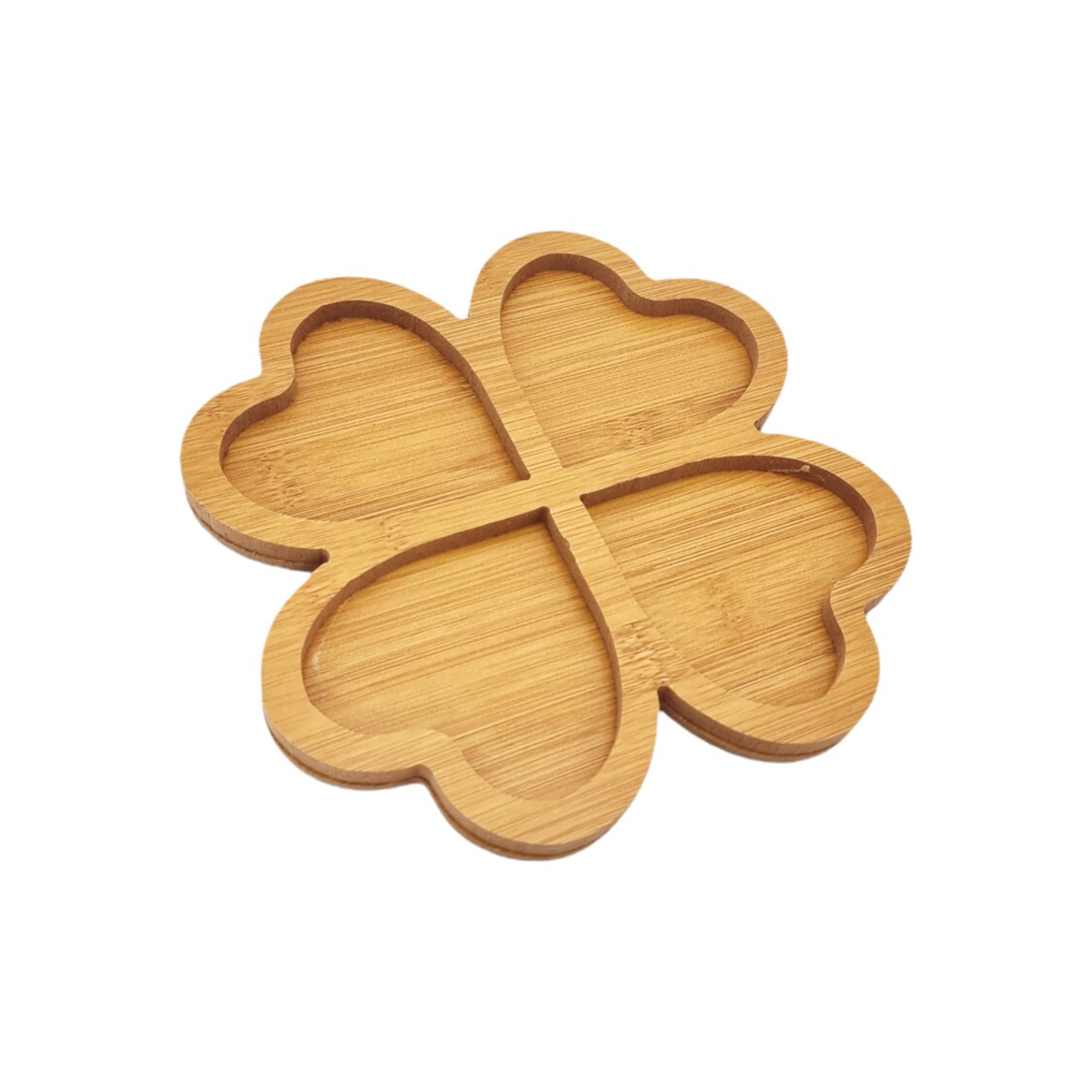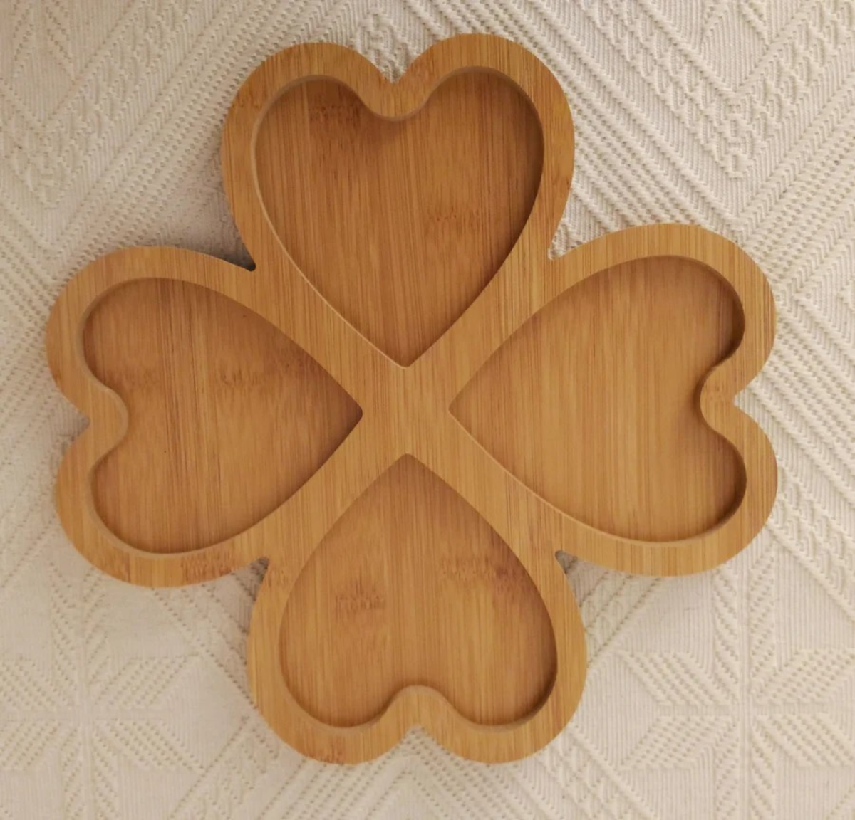 Adauga un plus de eleganta si caldura mesei tale cu tava de servire MADGENIX din bambus. Acest platou compartimentat sub forma de trifoi cu patru foi, alcatuit din 4 inimi generoase, este solutia perfecta pentru a organiza estetic gustarile preferate. Fabricata din bambus natural sustenabil, tava imbina durabilitatea cu un design modern, fiind ideala pentru petreceri, seri de film sau momente romantice.