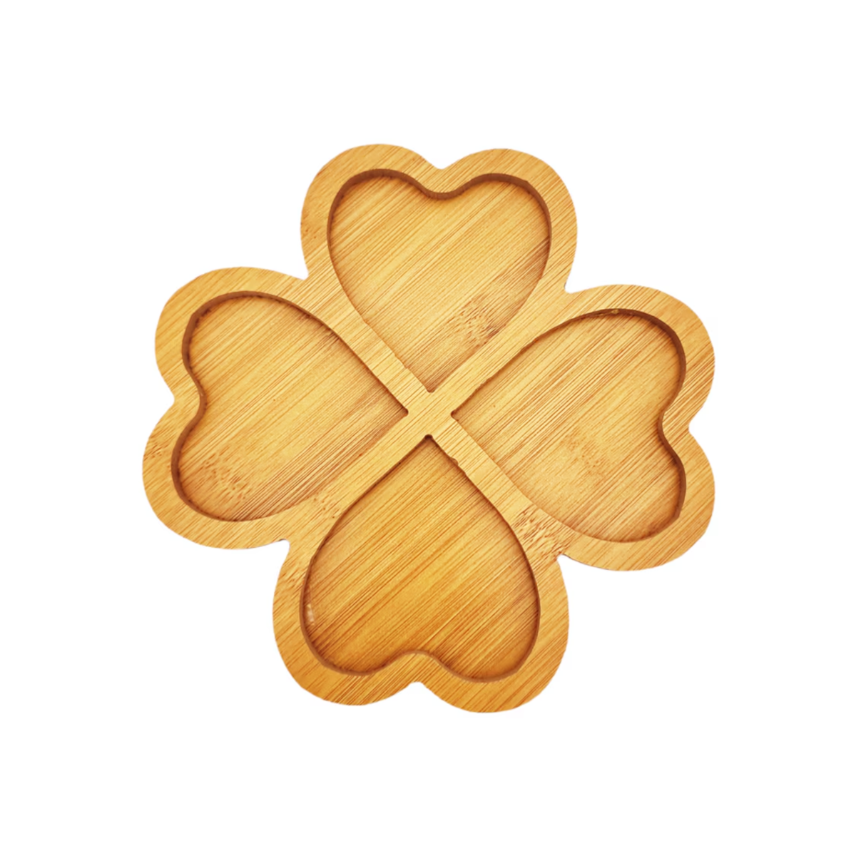 Tava Servire din Bambus Natural MADGENIX, 4 Compartimente in Forma de Inima, pentru Alune si Dulciuri Platou Compartimentat